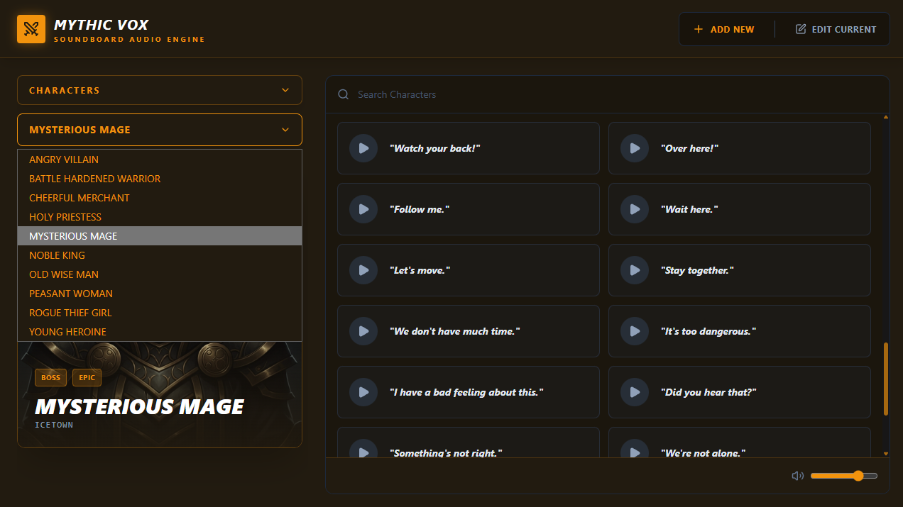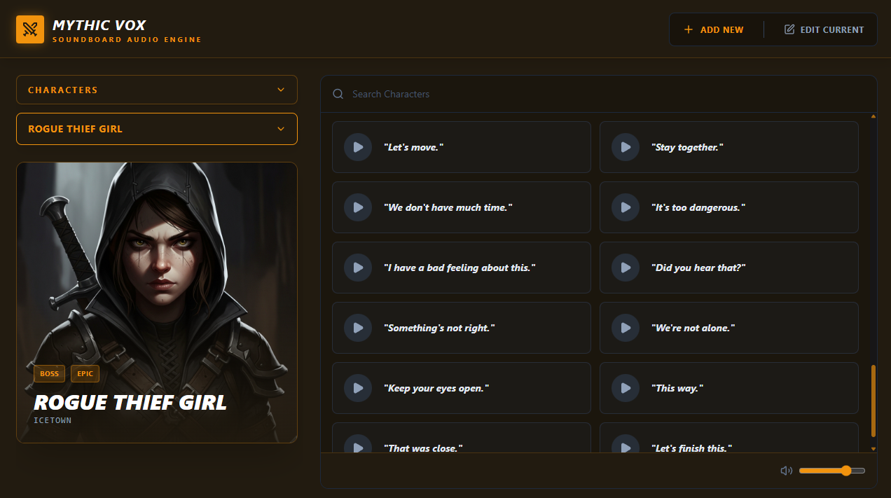 | Tags | ai, assets, Audio, dnd, game-dev, offline, soundboard, tools, Tabletop role-playing game, Voice Acting |